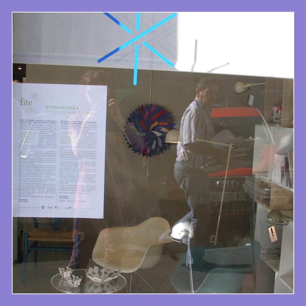 My proposal to FITE 2012 was WOIMAKUKKA textile (Energy power-flower, Ø 55cm), because it brings back to me the universal level of understanding between countries, cultures and people. It is understanding in forms and colours, without words.